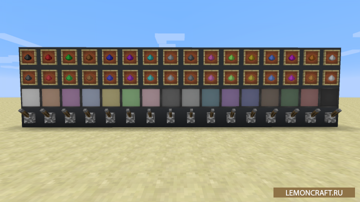 Мод Colored Lights добавит в игру лампы, которые будут светить тем светом в который они окрашены. Если быть точнее, в игре появится новая разноцветная пыль, из которой вы сможете сделать разноцветные лампы. Всего будет добавлено 16 различных цветов, этого будет достаточно, что бы все украсить в разные цвета в вашем мире.