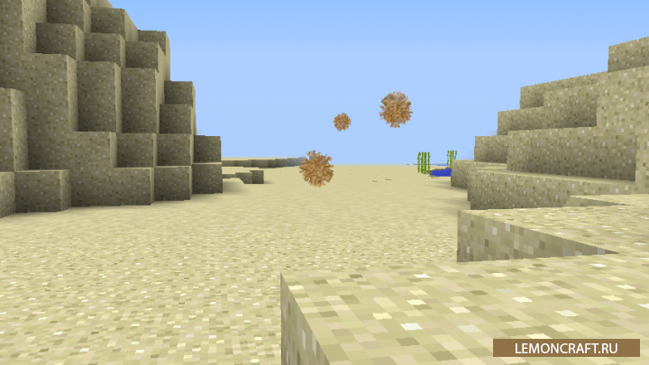 Мод Tumbleweed добавит в игру новое растение под названием перекати поле. Теперь исследовать пустыню станет намного интереснее. Бродя по пескам вы сможете встретить перекати поле, которое состоит из мертвых растений. Но это не просто декорация, если вы его поймаете вы сможете получить полезные вещи - перо, палку, мертвый куст, семечки арбуза или тыквы и другие полезные предметы. Вызвать перекати поле можно командой /summon tumbleweed.Tumbleweed.