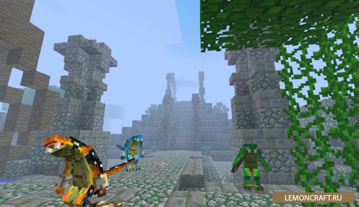 Мод Welcome to the Jungle добавит в игру новое измерение, 2 новых босса, 7 новых мобов и множество вещей и структур. На начальной стадии игры вы сможете найти структуру, где будет портал в новый мир. В этом мире вы встретите нового босса - динозавра. Структуры вы сможете найти и в обычном мире. Эти структуры дадут вам ценный лут и вы сможете встретить первого босса (голема). Так же, в джунглях, вы сможете обнаружить развалины старых городов. Там вы встретите большое количество ящеров, которые будут гореть желанием убить вас.