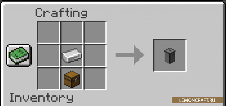 Мод на урну для мусора Trash добавит в игру новый блок, который будет выполнять роль мусорки для ненужных вам блоков и предметов. В игру будет добавлено 2 типа мусорок. Первый тип позволяет сохранить выброшенные вещи, второй тип полностью их уничтожает. Для того, что бы очистить содержимое мусорки нажмите на ней SHIFT+ПКМ. Будьте осторожны, не выбрасывайте вещи, которые могут еще пригодится, восстановить их не получится.