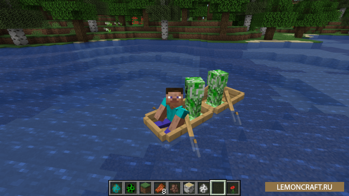 Мод на улучшенные лодки Boats and Beeps добавляет в игру возможность улучшить лодки с помощью ванильных блоков. Вы сможете увеличить их скорость, сможете размещать на них сундуки и, что немаловажно, сможете на них летать.