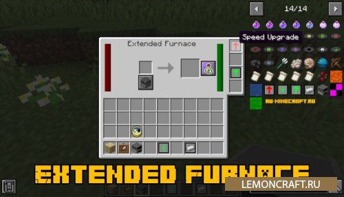 Мод на модернизируемую печь Extended Furnace добавляет в игру печь имеющую в своем составе специальные слоты в которые можно поместить различные улучшения.